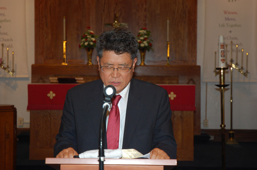 말씀을 전하시기 전 기도하시는 김요셉 목사님