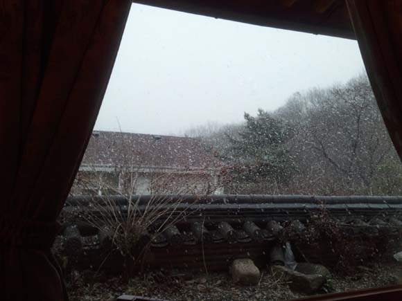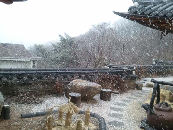 그제 함박눈이오던날에 친구들과 전통찾집에 앉아