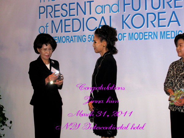 한국의료 50주년 감사패를 받는 김 지나 집사님
