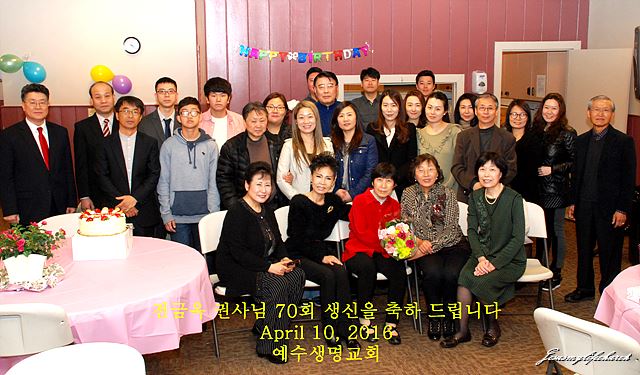 2016년 4월 10일 주일예배시간 후에 가졌던 전금옥 권사님 70회 생신을 축하 드리며